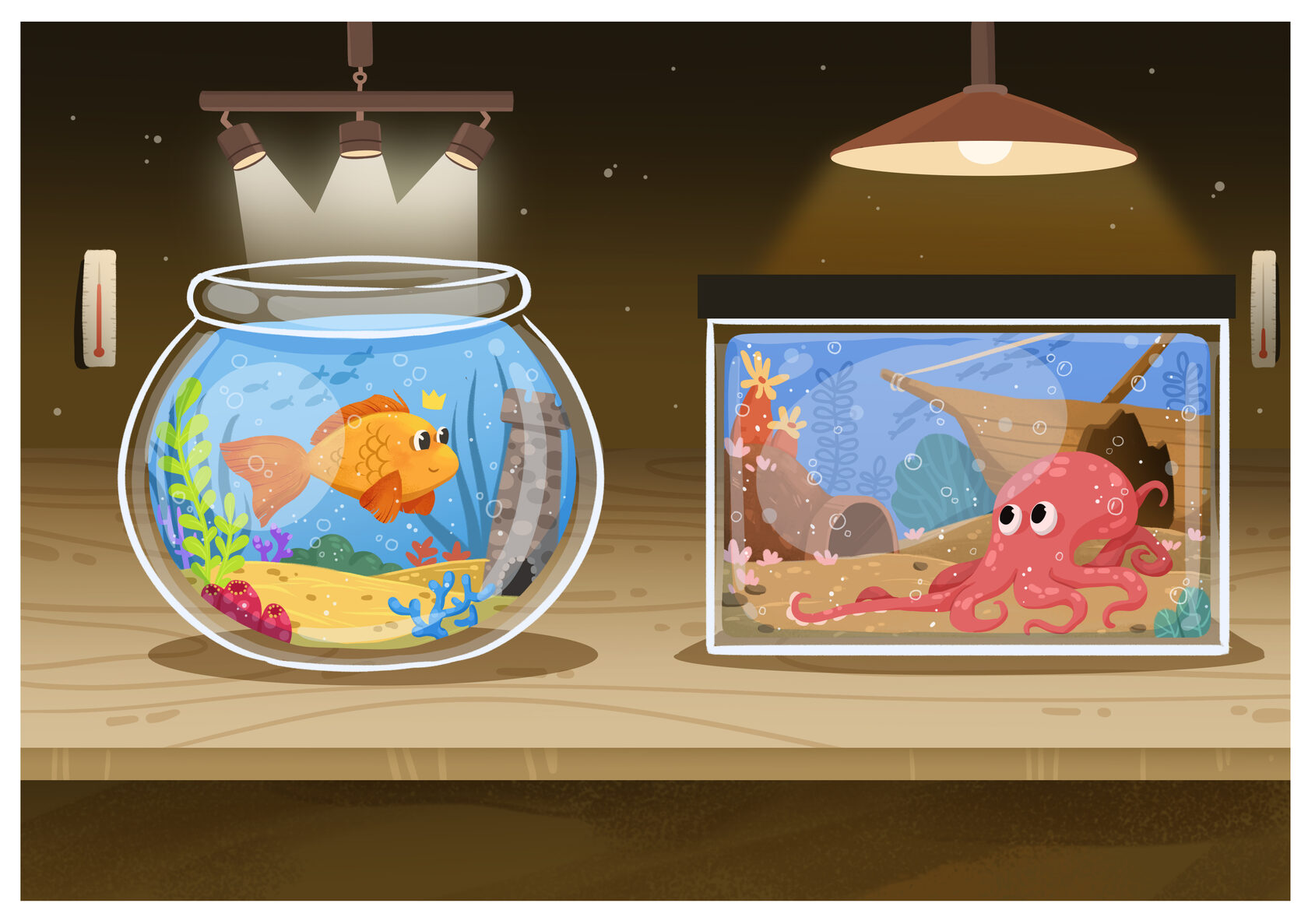 身處魚缸中,孤小游堅信自己就是舉世無雙的王者,可以隨心所欲地生活(也差不多是這樣)。對她而言,這一點不容質「魚」。但她或許有過那麼一兩次(至多三次)的冥想:可能在魚缸範圍之外存在著其他事物,但這想法出現的時候,充其量也祇是猶如一場遊戲一場夢。
